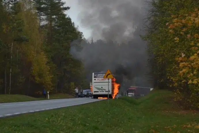Do poważnego i niebezpiecznego zdarzenia doszło wczoraj (21.10) na trasie Bartoszyce-Olsztyn. — Wracaliśmy z wycieczki szkolnej, kiedy autobus nagle zatrzymał się — relacjonuje zdarzenie jedna z uczestniczek. — Spod pojazdu zaczął wydobywać się dym, kazano nam się bardzo szybko ewakuować. Jeszcze wszyscy nie wysiedli, a autobus stanął w płomieniach — mówi.