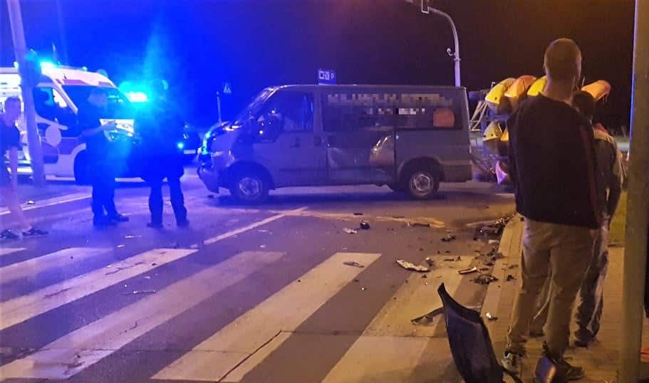 W sobotę (31 lipca 2021) późnym wieczorem na skrzyżowaniu ul. Kościuszki z al. Niepodległości bus przewożący kajaki zderzył się autem osobowym.