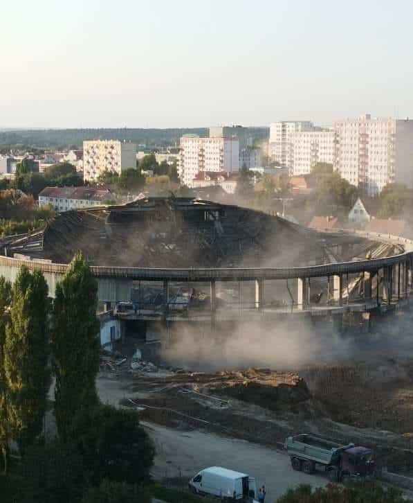 Dziś przed godz. 18:00 drewniana kopuła – według relacji TVP Olsztyn – została w sposób kontrolowany położona. Okoliczni mieszkańcy mówią o dźwiękach łamanych bel i elementów metalowych, a potem ogromnym huku. Wiele przerażonych osób wyszło przed bloki bojąc się, że doszło do nieszczęścia.