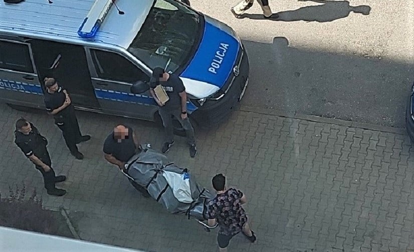 Na naszą skrzynkę redakcyjną alarm@tko.pl dostaliśmy zdjęcie od wstrząśniętego czytelnika. Widać na nim jak pracownicy zakładu pogrzebowego wynoszą z klatki schodowej ciało denata.