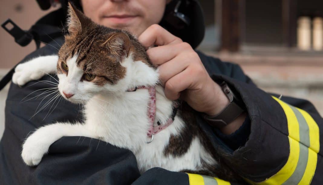 Po przybyciu na miejsce służby zastały kota siedzącego spokojnie za fotelem. Zwierzę nie wykazywało żadnych oznak agresji czy groźnego zachowania. Strażak bez problemu wyciągnął kota i zajął się zwierzakiem.