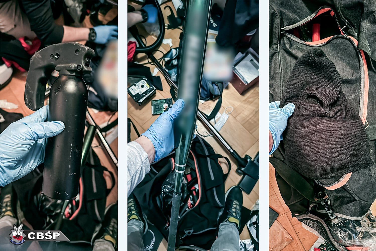 Podczas przeszukań funkcjonariusze zabezpieczyli 10 luksusowych samochodów, m.in. Maserati, Porsche i Volvo, gotówkę w wysokości 40 tys. zł oraz liczne narzędzia, które mogły być wykorzystywane do przestępstw. Wśród zabezpieczonych przedmiotów znalazły się m.in. pałki teleskopowe, amunicja, zagłuszarki GSM oraz granaty dymne.