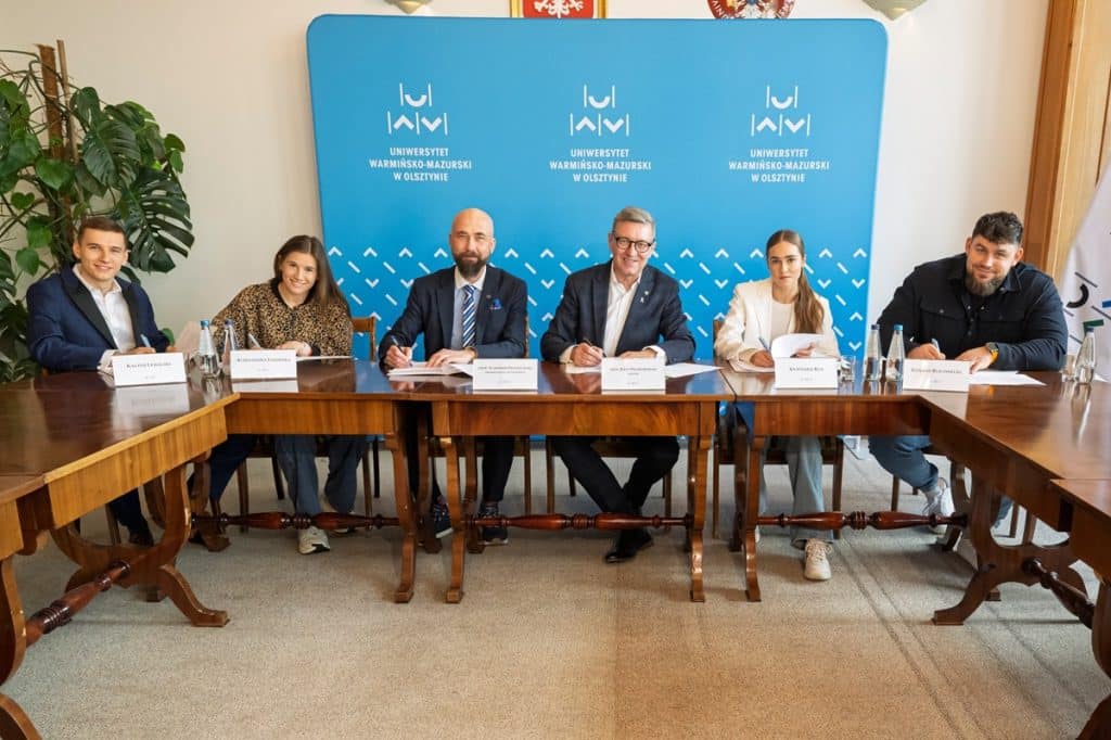 Czworo czołowych lekkoatletów z AZS UWM Olsztyn podpisało nowe umowy z klubem, które będą obowiązywać do 2028 roku. W gronie tym znajdują się: Konrad Bukowiecki, Aleksandra Lisowska, Anastazja Kuś oraz Kacper Lewalski. Podczas uroczystości rektor Uniwersytetu Warmińsko-Mazurskiego, prof. Jerzy Przyborowski, wyraził radość z kontynuacji współpracy z tak utalentowanymi sportowcami.