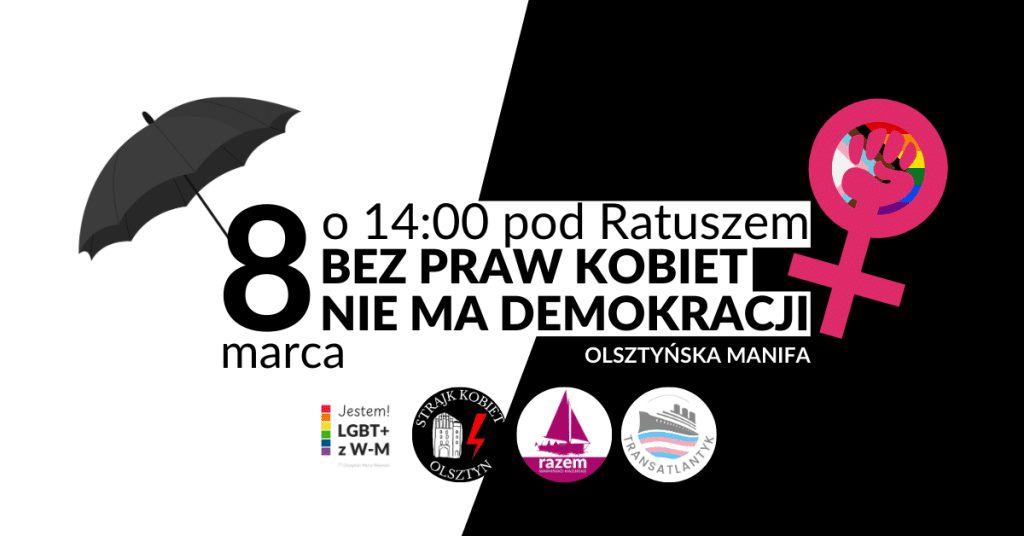 Manifa w Olsztynie jest wynikiem współpracy różnych grup i organizacji, takich jak Olsztyński Marsz Równości, Olsztyński Strajk Kobiet, partia Razem Warmińsko-Mazurskie oraz TranAtlantyk. Wspólne działanie ma na celu podkreślenie, że prawa kobiet są fundamentem demokratycznego społeczeństwa i ich przestrzeganie powinno być priorytetem. Organizatorzy zachęcają wszystkich do udziału w manifestacji i wyrażenia swojego poparcia dla równości oraz wolności obywatelskich.