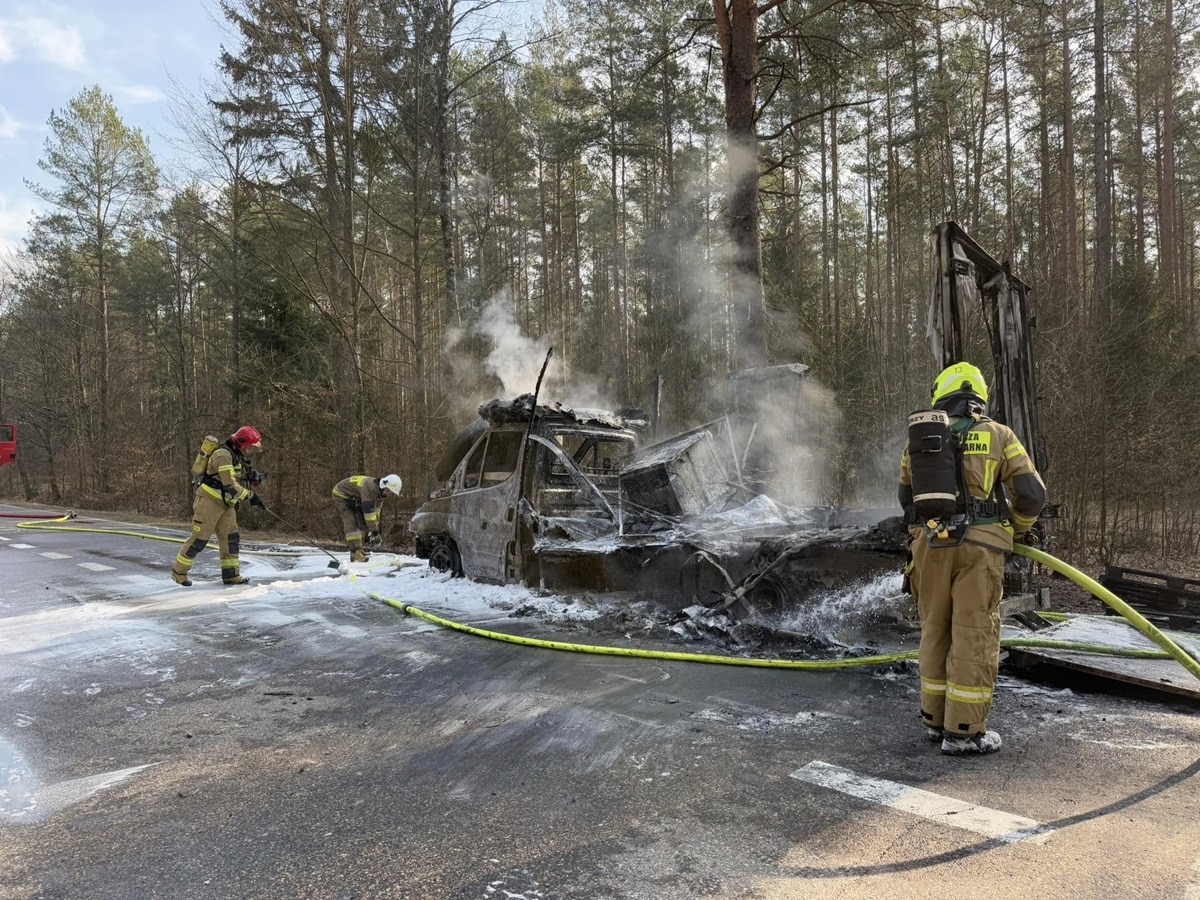 O godzinie 9:07 do służb ratunkowych wpłynęło zgłoszenie o pożarze pojazdu na trasie w pobliżu miejscowości Zimna Woda. Po przybyciu na miejsce okazało się, że płomienie objęły samochód dostawczy. Ogień szybko się rozprzestrzeniał, dlatego do akcji zadysponowano kilka jednostek straży pożarnej.