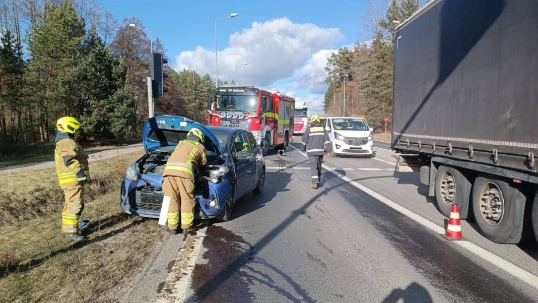 Na drodze krajowej nr 16 w pobliżu miejscowości Kaplityny doszło do kolizji dwóch samochodów osobowych. Na miejscu interweniowały służby ratunkowe, w tym straż pożarna oraz policja.