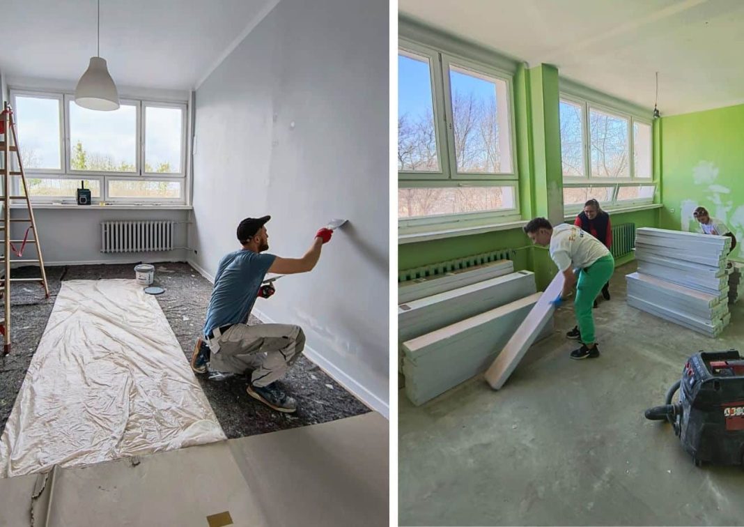 Nie zabrakło też zaangażowania ze strony wolontariuszy z Fundacji UNUM, którzy przeprowadzili prace porządkowe w tworzącym się centrum. Do akcji włączyła się firma Agapit, przekazując środki czystości, sprzęt sprzątający i zmywarkę do mycia posadzek.
