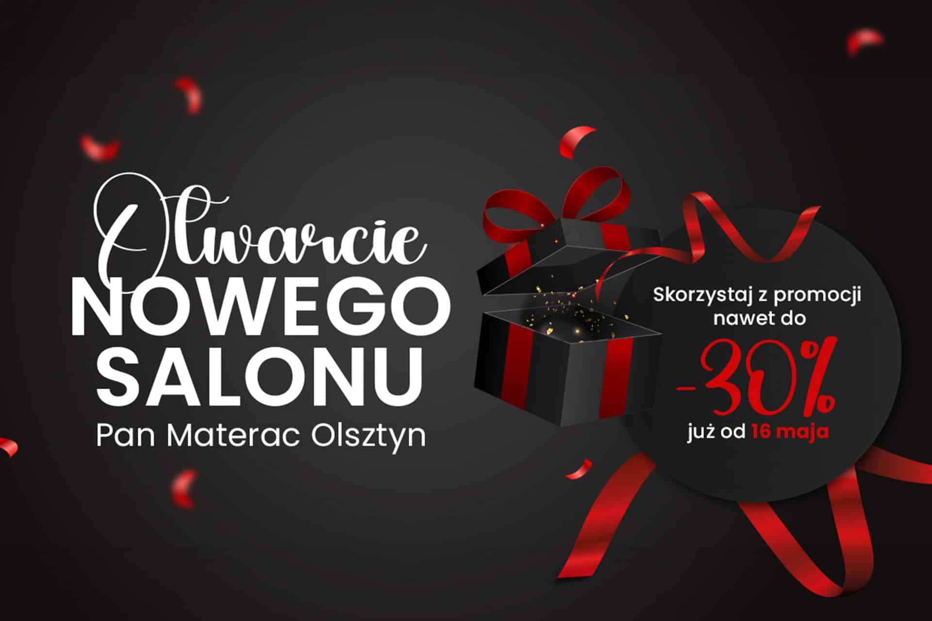 Z okazji otwarcia nowego salonu Pan Materac w Olsztynie przygotowane zostały wyjątkowe promocje – wybrane produkty do sypialni dostępne taniej nawet o 30%. To doskonała okazja, by odświeżyć wnętrze i zadbać o komfortowy sen, nie obciążając przy tym domowego budżetu.