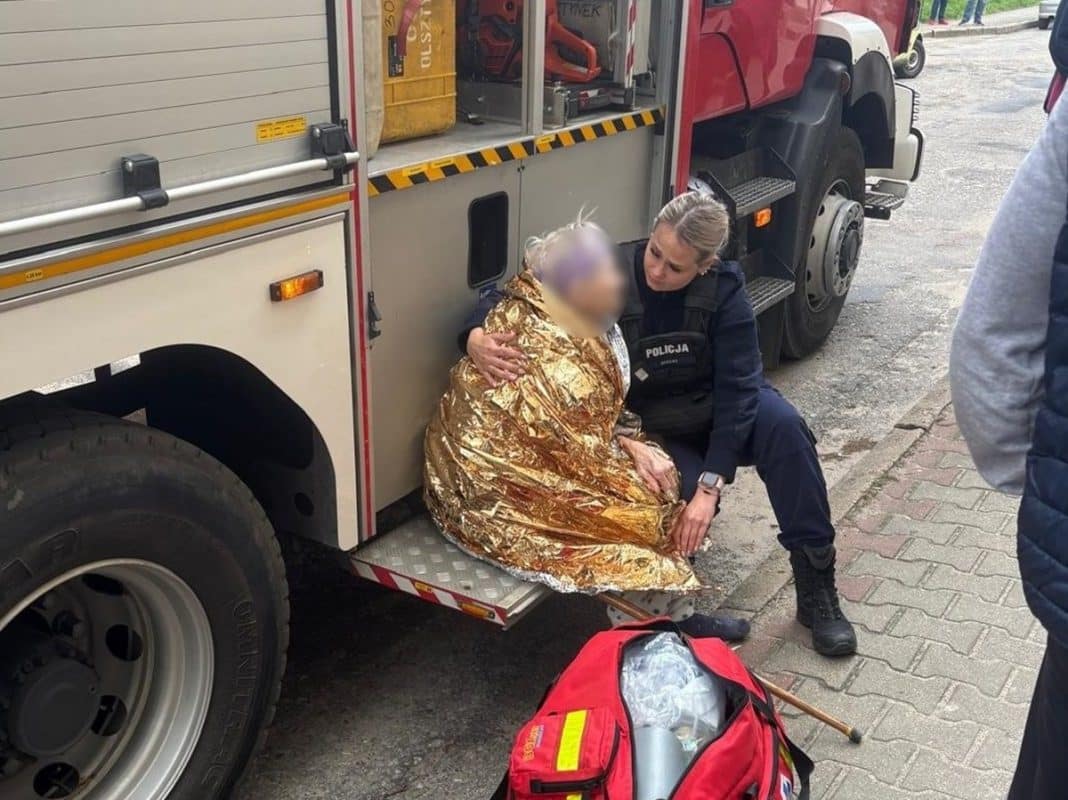 Na schodach przed wejściem do mieszkania siedziała przerażona starsza kobieta. Poinformowała policjantów, że w środku został jej mąż. Funkcjonariusze natychmiast podjęli decyzję o wejściu do płonącego mieszkania. W gęstym dymie, który utrudniał widoczność i oddychanie, odnaleźli zdezorientowanego seniora. Mężczyzna miał problemy z oddychaniem i nie był w stanie samodzielnie opuścić lokalu.