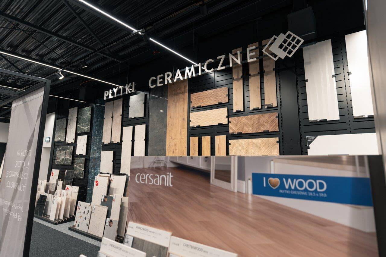 W salonie dostępny będzie szeroki wybór produktów: od podłóg i płytek, przez łazienki i kuchnie, aż po meble, oświetlenie, drzwi, dywany i dekoracje. To rozwiązania zarówno praktyczne, jak i estetyczne – dla osób ceniących funkcjonalność i styl.