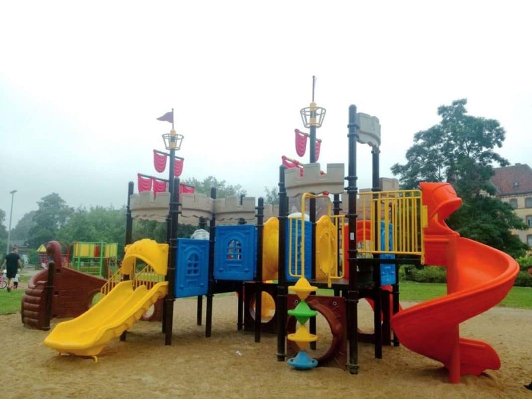 Plac zabaw w formie średniowiecznego zamku to wyjątkowe miejsce, które przenosi dzieci w świat rycerzy i księżniczek. Mieści się na Osiedlu Grunwaldzkim. Na terenie obiektu znajdują się dwa zestawy zabawowe – jeden dla młodszych, a drugi dla starszych dzieci. Wśród atrakcji można znaleźć zjeżdżalnie, ścianki wspinaczkowe, pomosty, wieżyczki widokowe oraz zjazd rurowy.