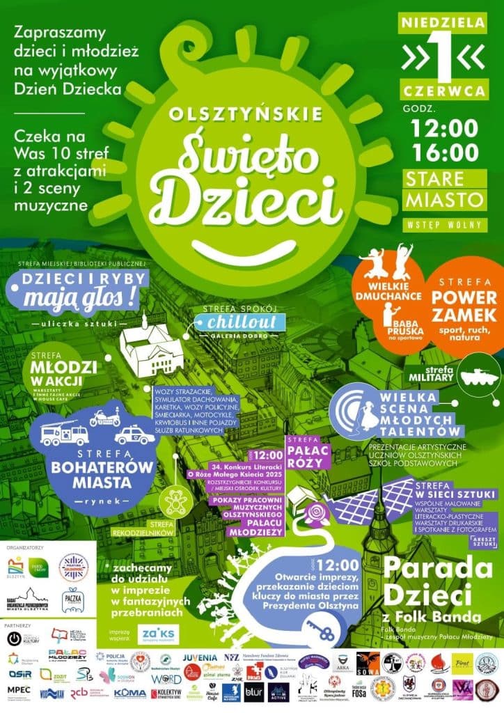 Główne uroczystości Dnia Dziecka w tym roku rozpoczną się o godz. 12:00 na Starym Mieście. Prezydent Olsztyna Robert Szewczyk przekaże dzieciom symboliczny klucz do miasta. Towarzyszyć temu będzie uroczyste wykonanie Hymnu Warmii przez zespół Folk Banda, a następnie ruszy kolorowa parada uliczkami Starego Miasta. Organizatorzy zachęcają do kreatywnych przebrań – autorzy najciekawszych strojów mogą liczyć na nagrody.