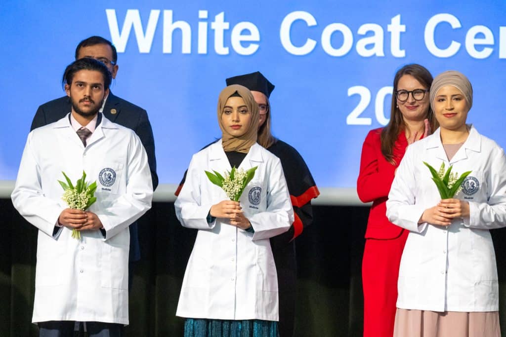 Po studentach polskojęzycznego kierunku lekarskiego białe fartuchy założyli również żacy anglojęzycznego programu medycznego. Tę część ceremonii poprowadził dr n. med. Rakesh Jalali, prodziekan ds. studentów anglojęzycznych, który przypomniał przyszłym lekarzom, że odpowiedzialność za życie pacjentów jest największym wyzwaniem w tym zawodzie.