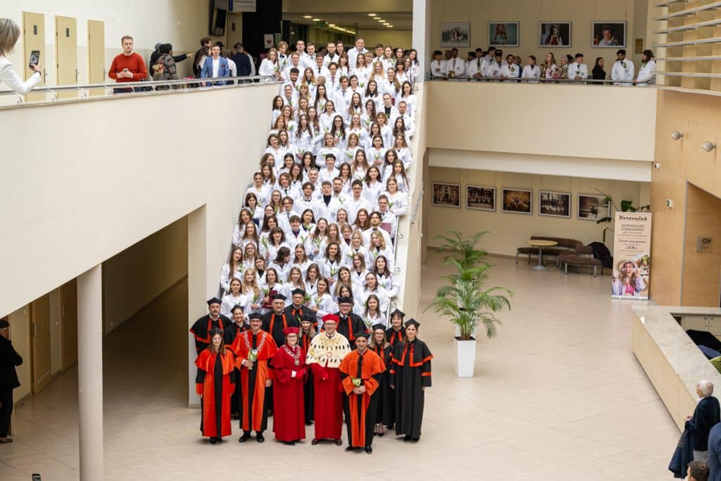 Dziekan przypomniał studentom, że białe fartuchy symbolizują nie tylko profesjonalizm, ale także etykę zawodową, która będzie im towarzyszyć przez całe życie. – Pamiętajcie, że nie zawsze będziecie wygrywać – z chorobą i śmiercią. Ale musicie być wierni przysiędze Hipokratesa, zawsze z pokorą podchodząc do pacjentów i chorób – podkreślał profesor.