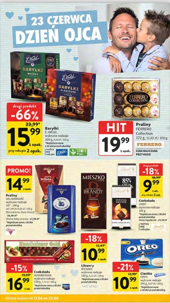 Tata też lubi słodycze – nawet jeśli rzadko się do tego przyznaje. Z okazji Dnia Ojca w Intermarché Olsztyn szeroki wybór czekolad, pralinek, bombonierek, ciastek i kolorowych ciast. To doskonały sposób, by osłodzić ten dzień i zorganizować rodzinny deser przy kawie. Każdy łasuch znajdzie tu coś dla siebie.