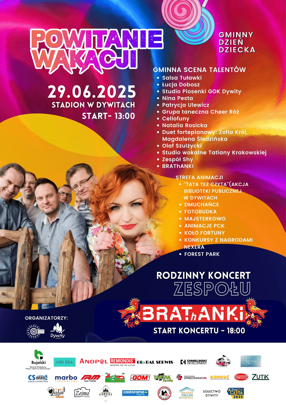 Kolorowe miasteczko pełne atrakcji, dziecięca scena talentów, dmuchańce, darmowe lody i finał z prawdziwą gwiazdą. Tak właśnie gmina Dywity szykuje się do wielkiego powitania wakacji. Już w niedzielę 29 czerwca odbędzie się tam rodzinna impreza plenerowa z koncertem zespołu BRAThANKI. Wstęp wolny.
