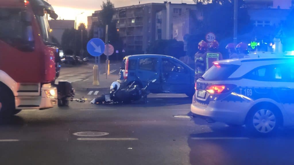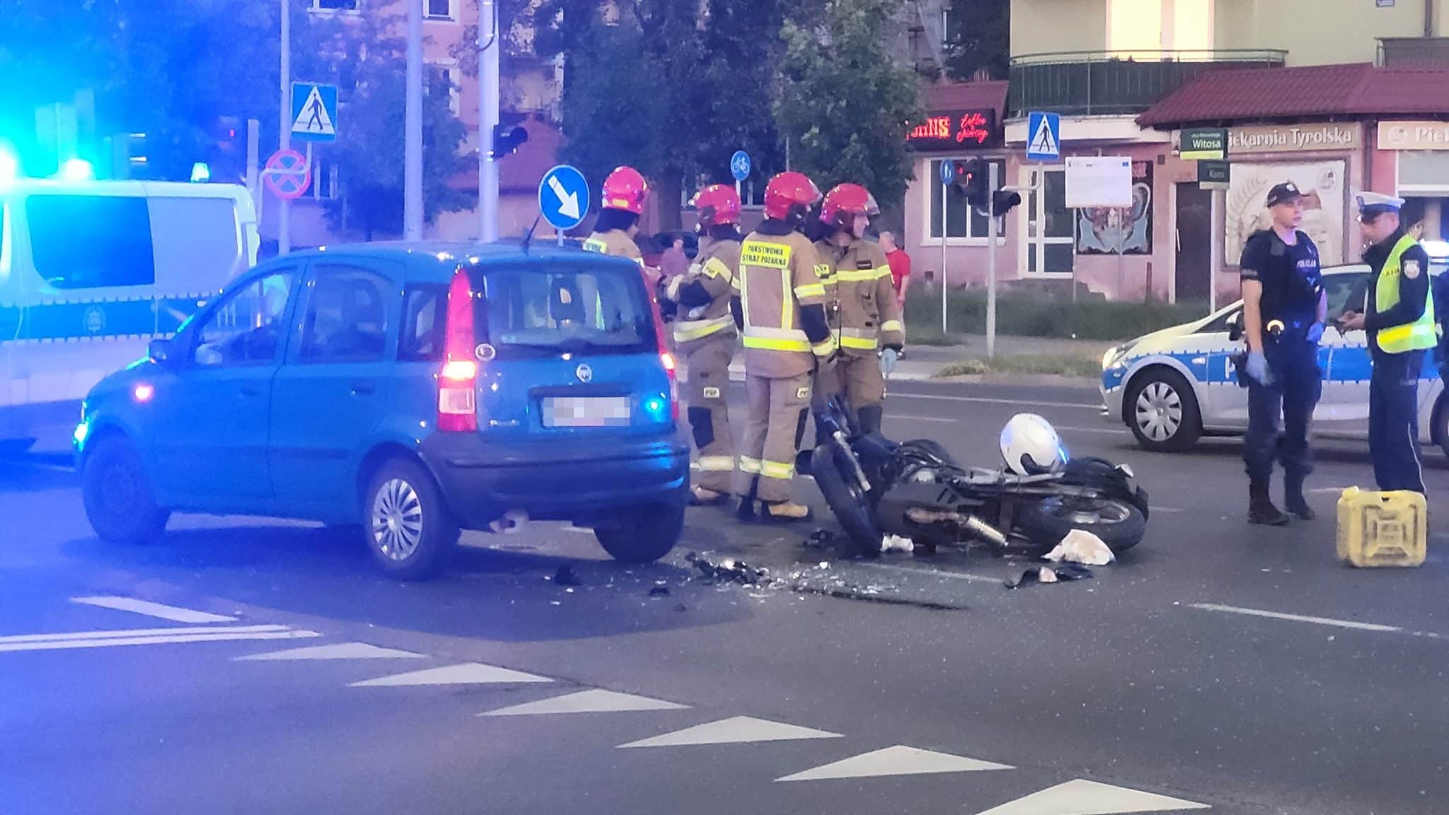 Do zdarzenia doszło 3 lipca wieczorem na ul. Kanta, w pobliżu krańcówki tramwajowej na Jarotach. Jak wynika z ustaleń policji, 18-letnia kobieta kierująca fiatem skręcała w lewo na skrzyżowaniu, gdy zderzyła się z nadjeżdżającym motocyklistą.