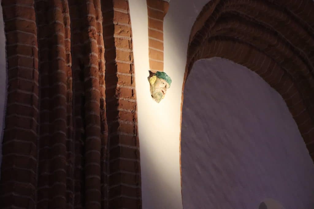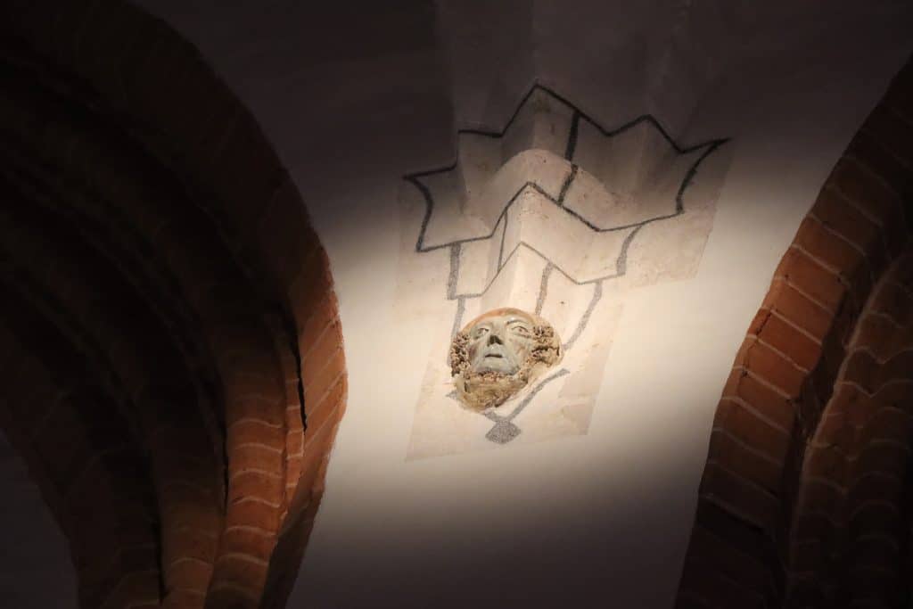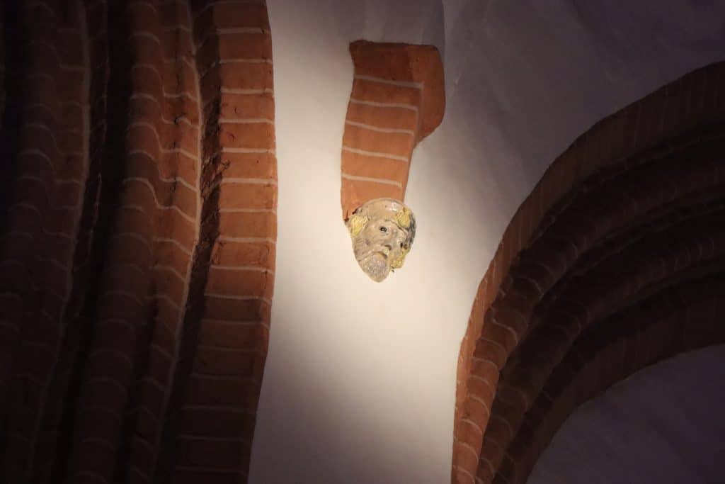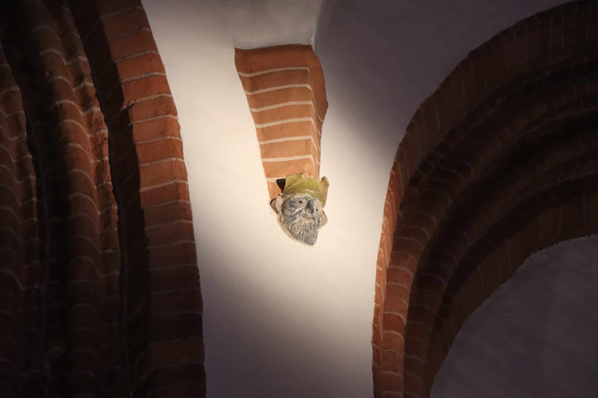 Chodzi o ceramiczne główki – niewielkie twarze wkomponowane w architekturę sklepienia. Z zewnątrz przypominają wsporniki, jednak w rzeczywistości pełnią wyłącznie funkcję dekoracyjną.
