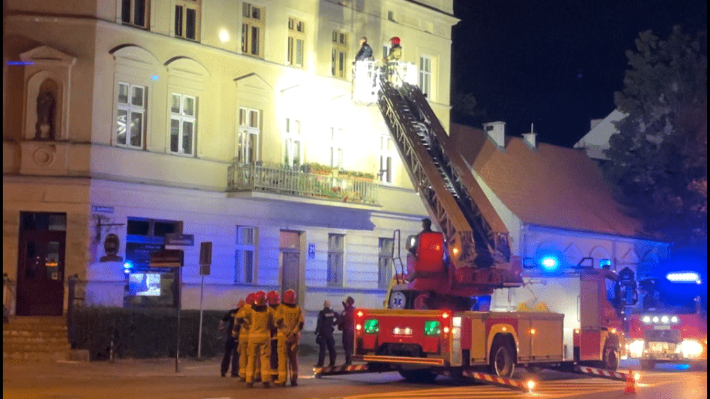 Podnośnik, okno i zamknięte drzwi – co działo się w olsztyńskiej kamienicy?