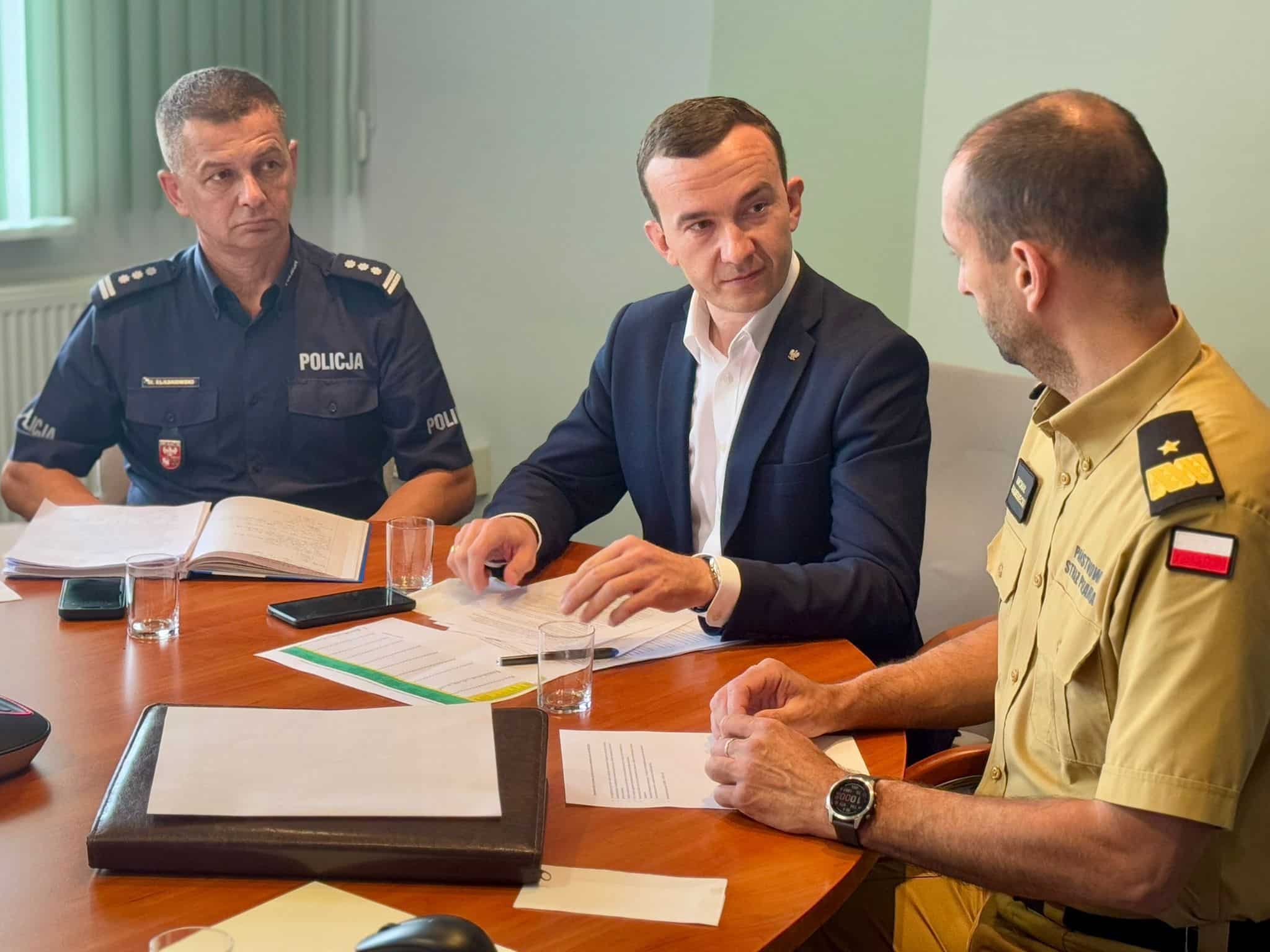 „Niezależnie od nieco lepszych prognoz naszym obowiązkiem jest utrzymać pełną gotowość. Jesteśmy po to, by działać wyprzedzająco, zapewniając bezpieczeństwo mieszkańcom, a zwłaszcza dzieciom przebywającym na letnim wypoczynku” – powiedział Mateusz Szauer podczas otwarcia spotkania.