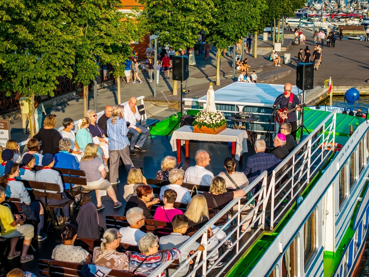 Kulminacyjnym punktem wydarzenia było wypłynięcie łodzi z figurą Matki Bożej. Obraz ten – Maryja unosząca się na wodach jeziora – zrobił ogromne wrażenie zarówno na uczestnikach, jak i na przypadkowych przechodniach oraz żeglarzach. W ciszy i skupieniu wierni towarzyszyli figurze modlitwą i śpiewem, tworząc atmosferę duchowego uniesienia.