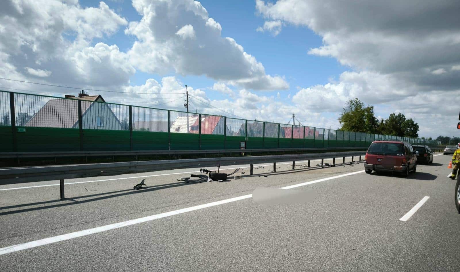 Elementy karoserii i części mechaniczne uszkodzonych samochodów zostały rozrzucone były po pasie drogowym. To wskazuje na dużą siłę zderzenia i jednocześnie jest jedną z przyczyn ograniczeń w ruchu.