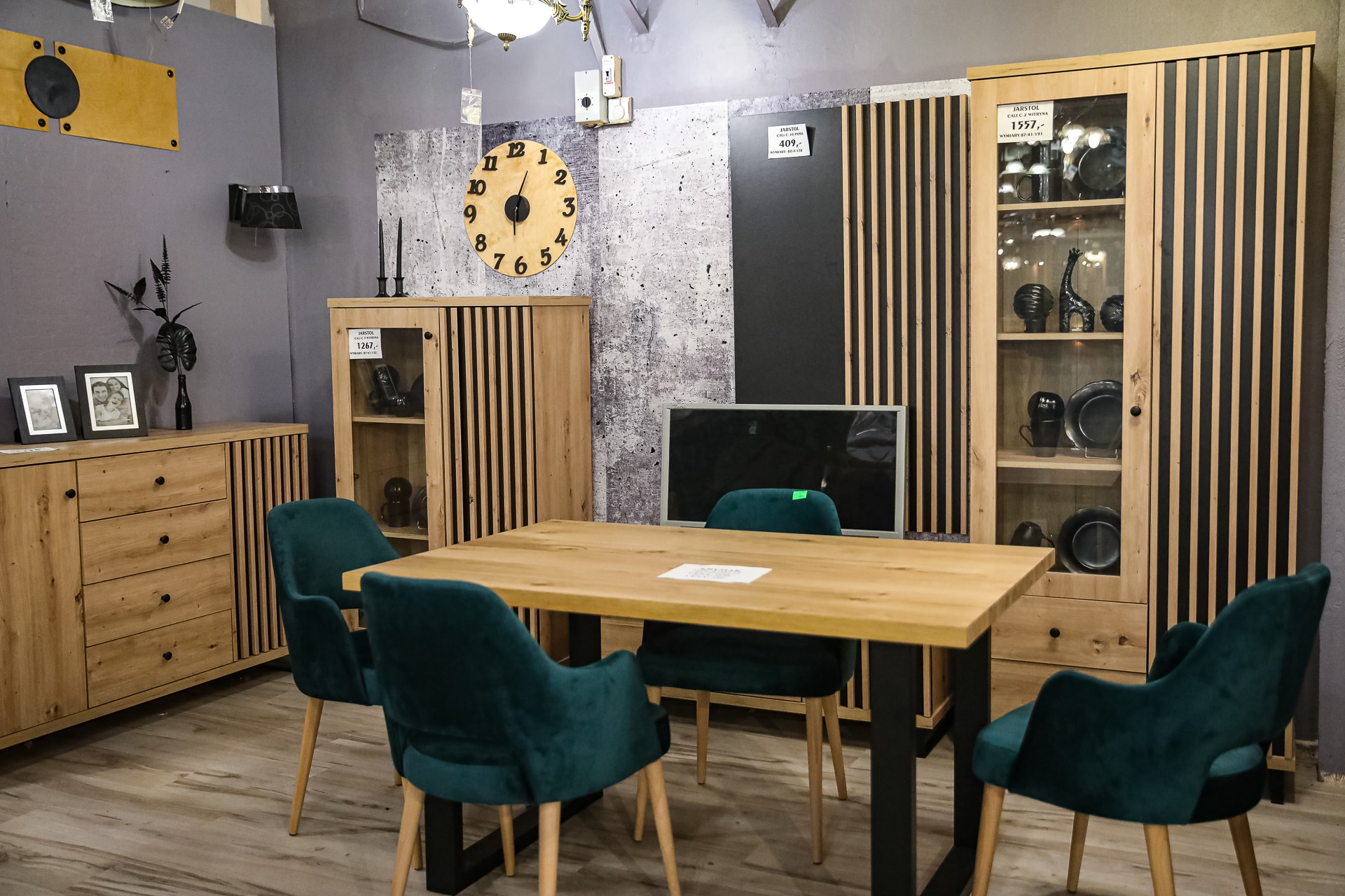 W salonie znajdziemy również bogaty wybór mebli twardych – komód, witryn, stołów, krzeseł, półek czy szafek. Wszystkie łączy solidne wykonanie, funkcjonalność i estetyka oraz pochodzenie od cenionych polskich producentów. W ofercie są m.in. wyroby marek takich jak Helvetia, Gała Meble, Brzost, Meble Krysiak Jarstol czy Drewmix – znanych z wysokiej jakości, trwałych materiałów i dopracowanego wzornictwa.