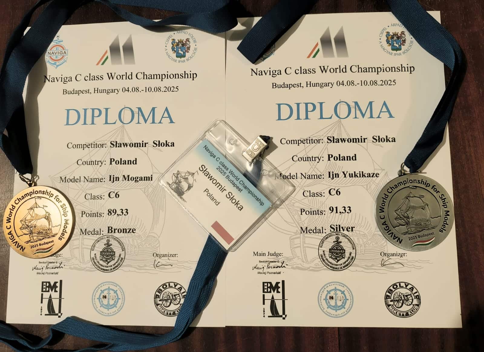 Na Mistrzostwach Świata Modeli Statków i Okrętów Naviga C, które odbyły się w dniach 4–10 sierpnia 2025 roku, wzięło udział kilkudziesięciu zawodników z 13 krajów. Łącznie zaprezentowano aż 340 modeli, a wśród nich dwa autorstwa Sławomira Słoki. Olsztynianin przygotował modele w klasie C6 – oba w skali 1:350. W Budapeszcie krążownik IJN Mogami został nagrodzony srebrnym medalem, a niszczyciel IJN Yukikaze – brązowym.
