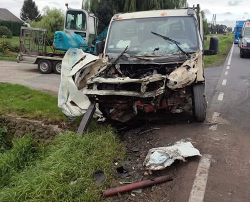 Przód busa został kompletnie rozbity, natomiast ciężarówka zakończyła jazdę w rowie. Według wstępnych ustaleń w wyniku zdarzenia poszkodowana została jedna osoba. Jak ustalili policjanci, kierowca busa nie posiadał uprawnień do kierowania pojazdem, a jego samochód nie miał ważnego przeglądu technicznego – podał portal infoilawa.pl.