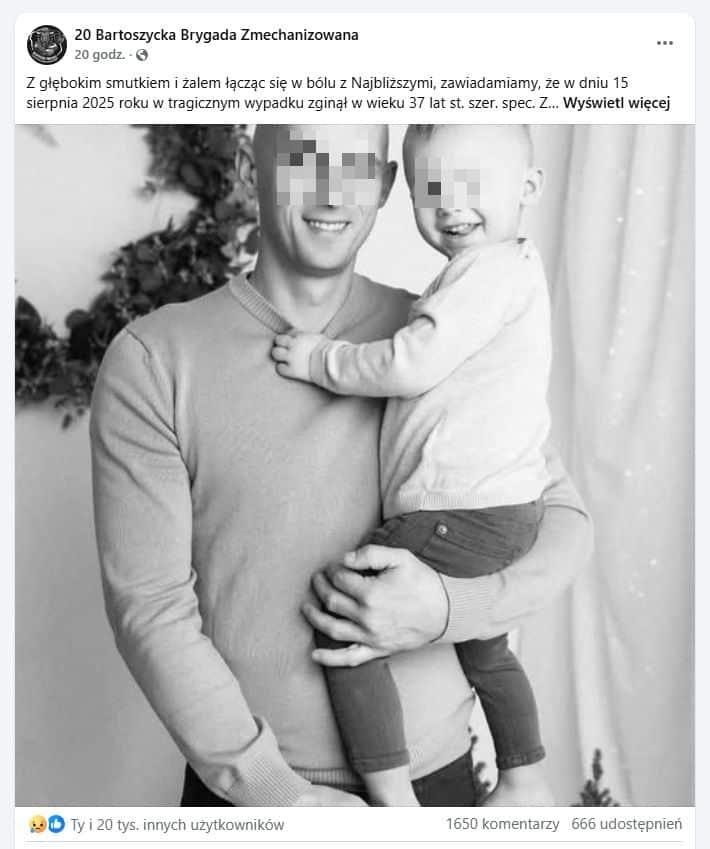 BartoszyceŻołnierz i 2-letni syn zginęli w wypadku. Ciężarna żona stanie przed prokuraturą