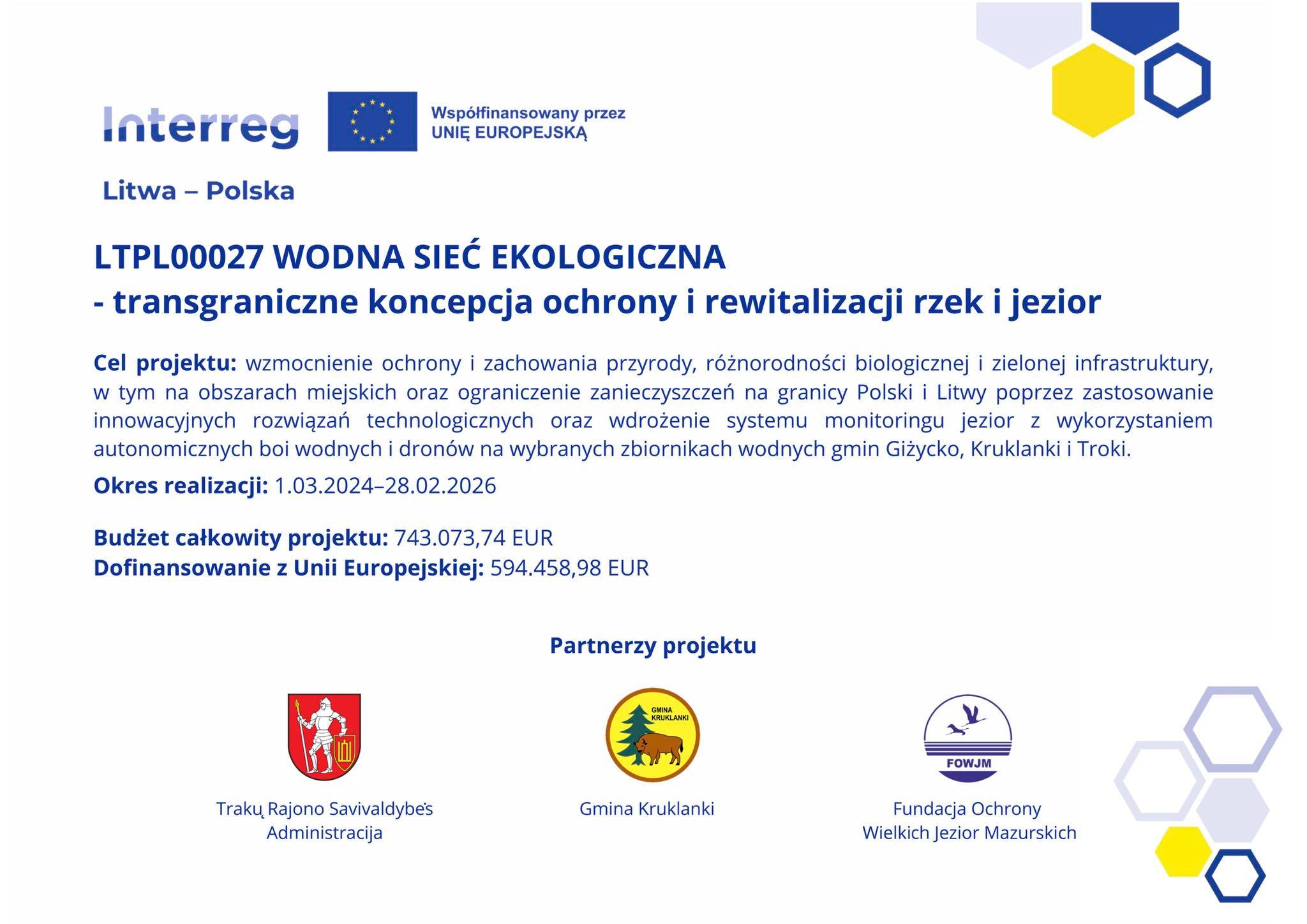 Plac zabaw jest częścią większego przedsięwzięcia „Wodna Sieć Ekologiczna”, realizowanego w ramach programu Interreg Litwa–Polska 2021–2027. Fundacja Ochrony Wielkich Jezior Mazurskich działa tu jako partner wiodący wraz z Samorządem Rejonu Trockiego i gminą Kruklanki.