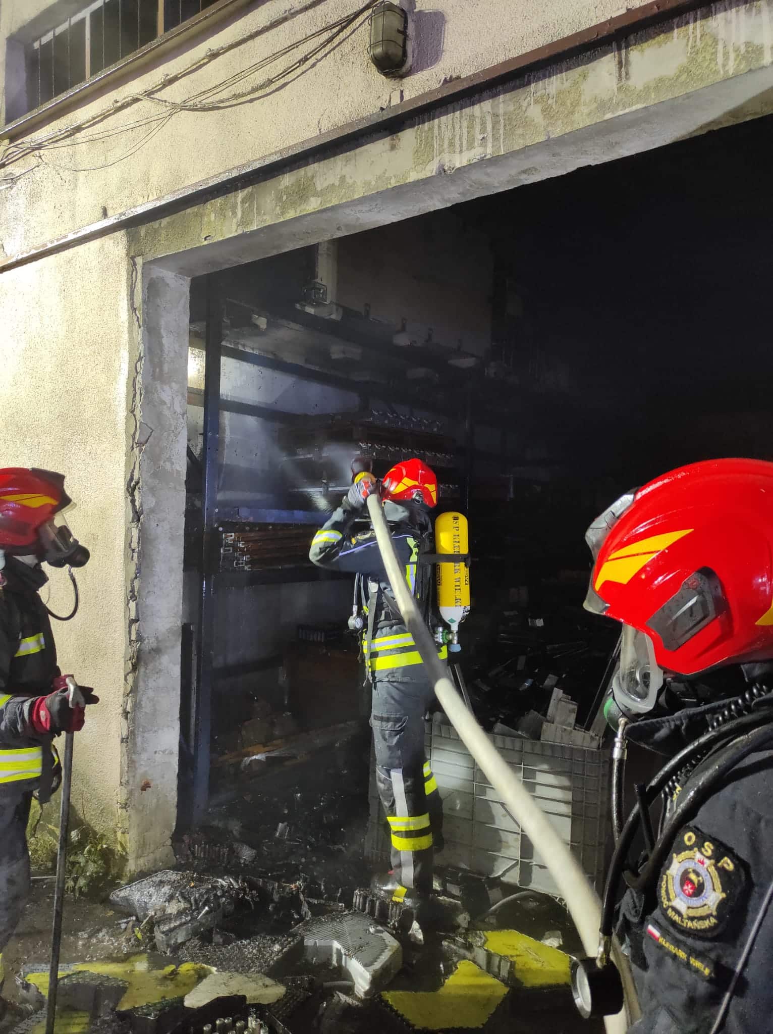 11 września o godzinie 23:40 do Stanowiska Kierowania Komendanta Miejskiego PSP w Olsztynie wpłynęło zgłoszenie o pożarze hali magazynowej przy ulicy Metalowej. Pierwsze zastępy po przyjeździe na miejsce rozpoznały, że wewnątrz znajduje się duża ilość baterii litowo-jonowych. To właśnie one stanowiły największe zagrożenie – są wyjątkowo niebezpieczne podczas pożaru ze względu na możliwość gwałtownej reakcji chemicznej i trudności w gaszeniu. Cały magazyn znajdował się już w ogniu, kiedy strażacy rozpoczęli działania.