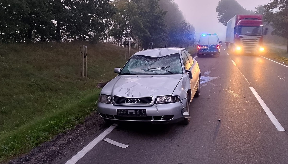 Dziś (25 września) po godzinie 5 rano oficer dyżurny mrągowskiej policji otrzymał zgłoszenie o wypadku drogowym z udziałem dzikiej zwierzyny. Na jednej z lokalnych dróg 57-letni kierowca audi nie zdołał uniknąć zderzenia z nagle przebiegającym przez jezdnię łosiem.