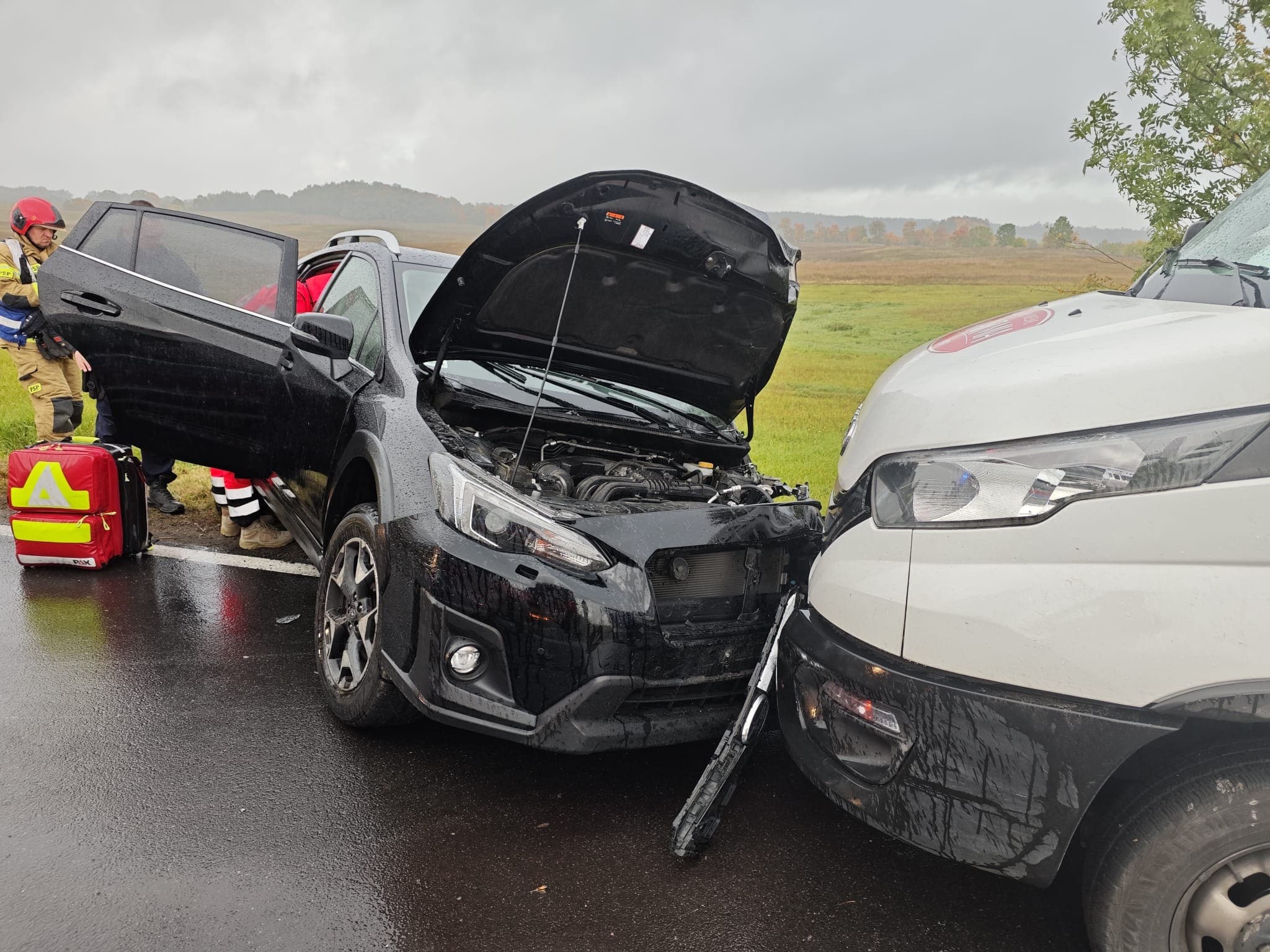 Na miejscu zdarzenia panują trudne warunki – jest ślisko i mokro po opadach. Na miejscu prowadzone są czynności dochodzeniowe, które mają ustalić dokładne przyczyny i przebieg wypadku. Według wstępnych ustaleń mogło dojść do nieprawidłowego manewru wyprzedzania lub nieuwagi jednego z kierowców. Na razie nie ma oficjalnych informacji o liczbie osób poszkodowanych.