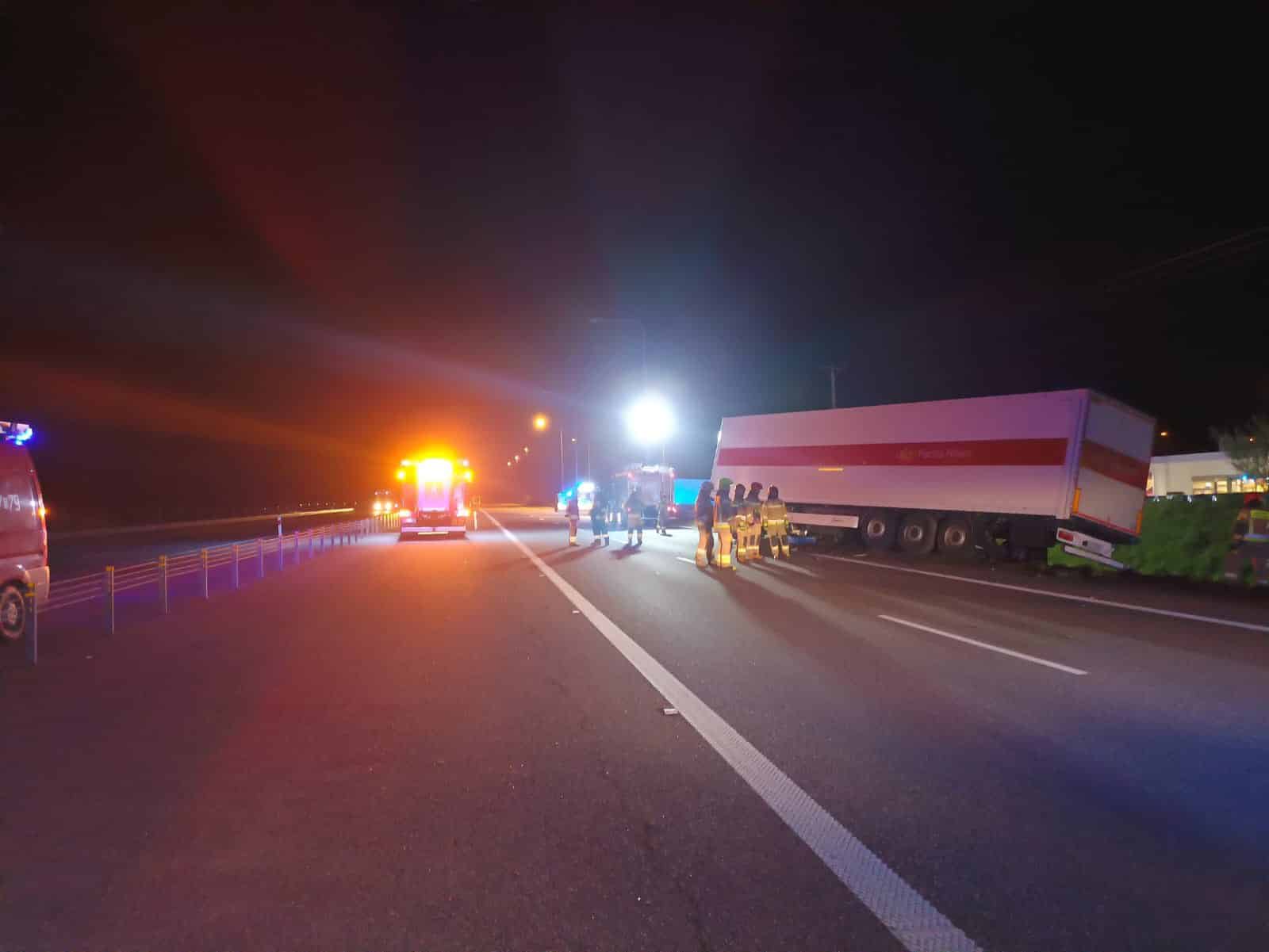Do zdarzenia doszło w nocy około godziny 3:30. Dyżurny stanowiska kierowania Komendy Powiatowej Państwowej Straży Pożarnej w Ostródzie otrzymał zgłoszenie o wypadku samochodu ciężarowego na drodze ekspresowej S7 w kierunku Gdańska, w rejonie MOP Sople.