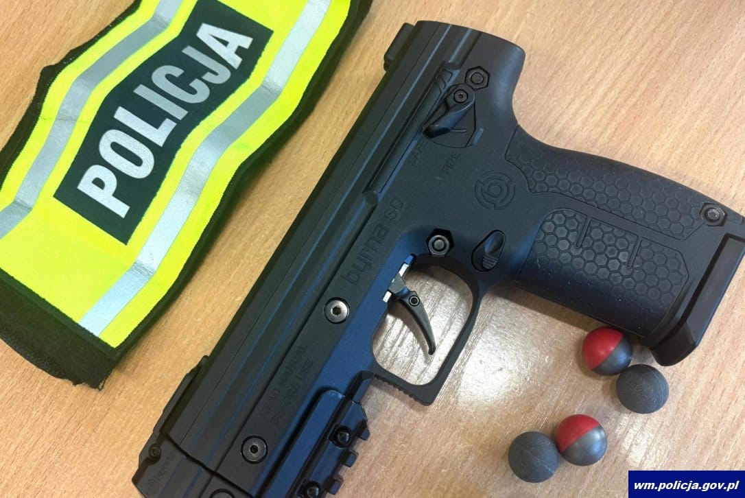 Podczas oględzin okazało się, że zabezpieczony przez funkcjonariuszy „pistolet” to miotacz pocisków obronnych, wyglądem do złudzenia przypominający broń palną.
