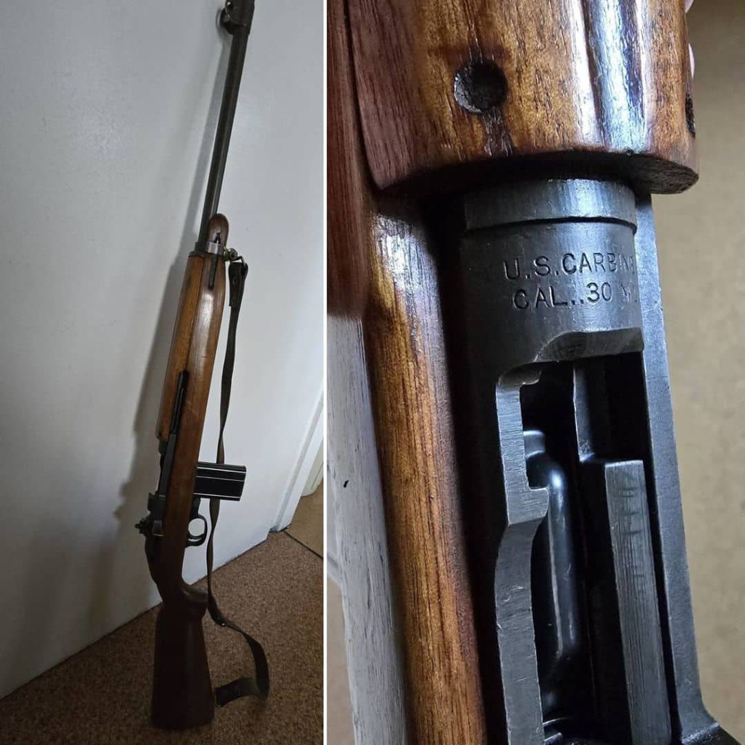 Policjanci po przybyciu na miejsce potwierdzili, że chodzi o amerykański karabinek M1 Carbine kalibru 7,62×33 mm oraz 174 sztuki ślepej amunicji połączone w taśmę.