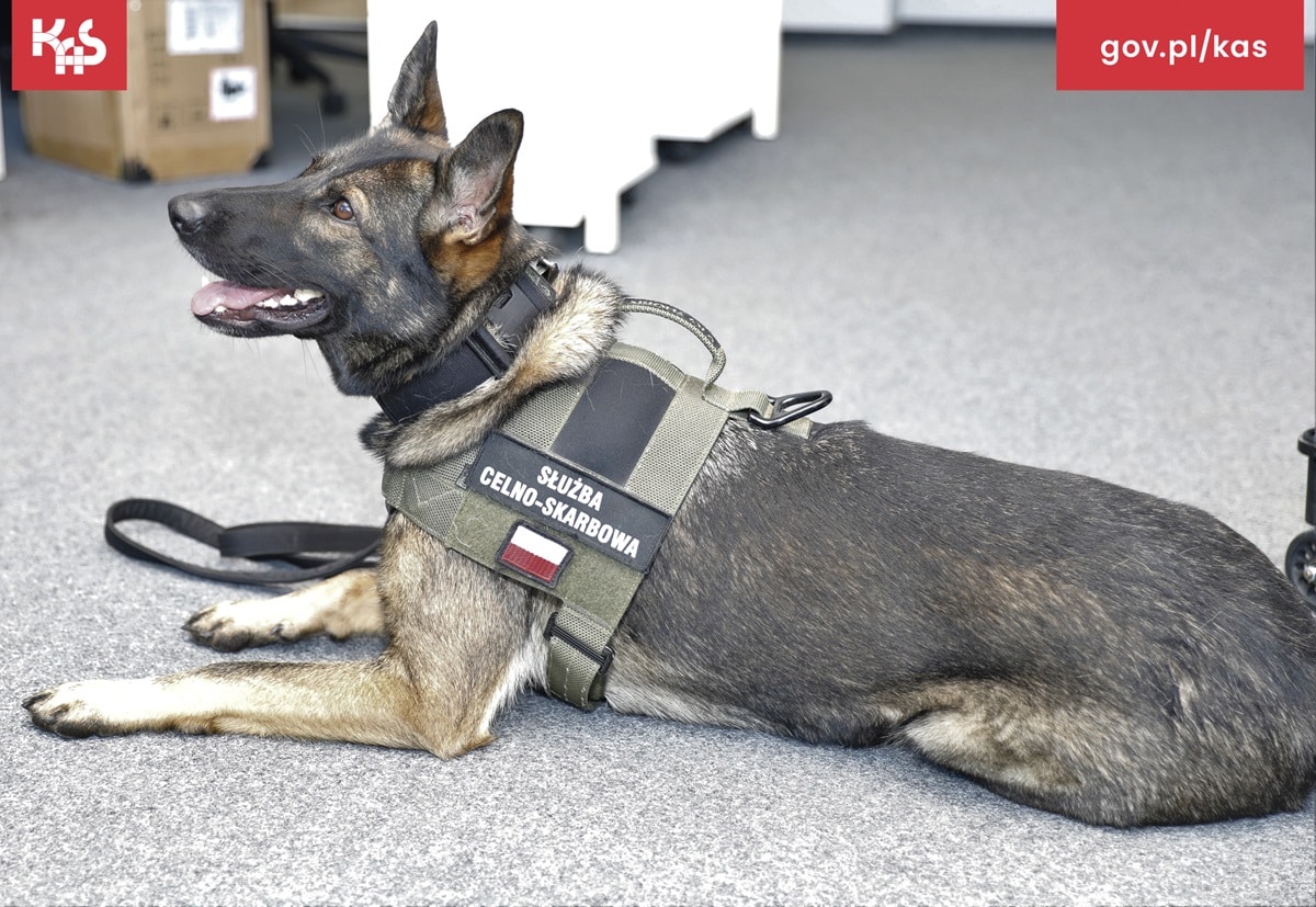 Rutynowa kontrola na terenie jednej z firm kurierskich na Warmii i Mazurach zakończyła się dużym sukcesem służb. Kluczową rolę w akcji odegrała suczka Aira – wyszkolony pies do wykrywania substancji odurzających i waluty.