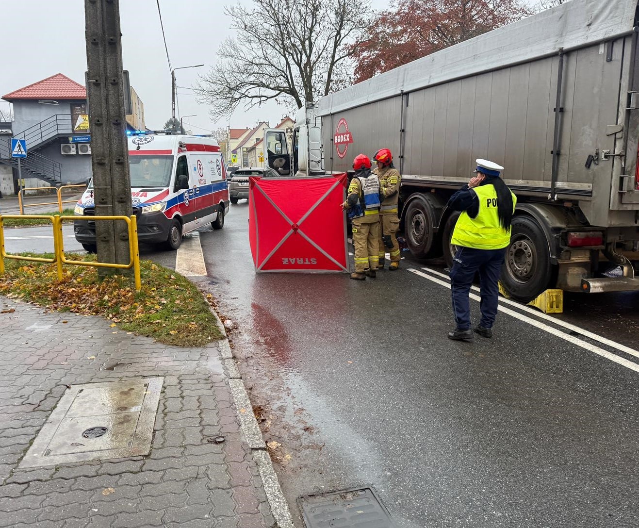 W poniedziałkowy poranek doszło do tragicznego wypadku z udziałem samochodu ciężarowego i pieszej. Na miejscu pracują służby pod nadzorem prokuratora.