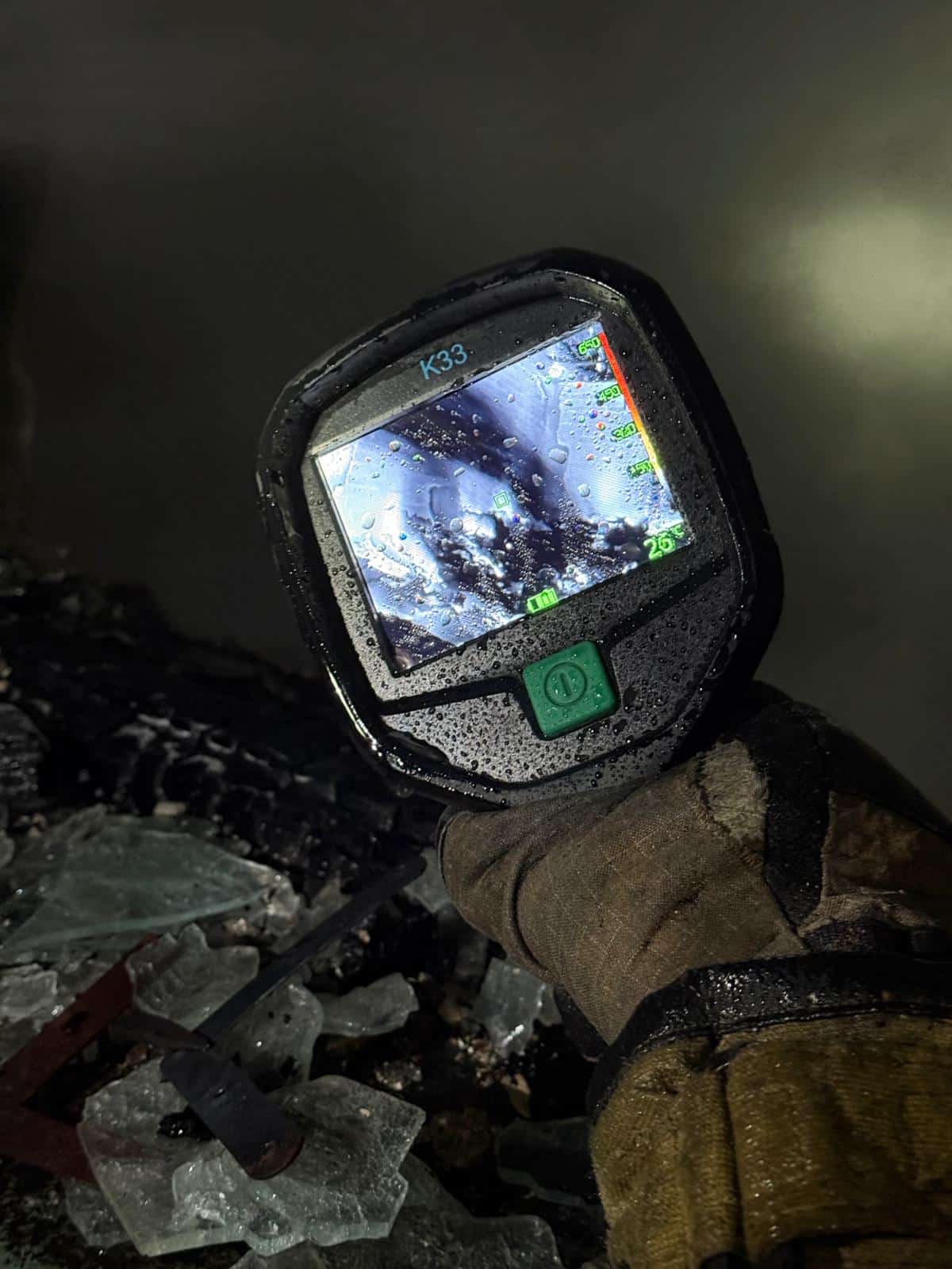 Po ugaszeniu ognia strażacy rozebrali część dachu i sprawdzili pogorzelisko kamerą termowizyjną, aby upewnić się, że nie pozostały żadne zarzewia ognia.