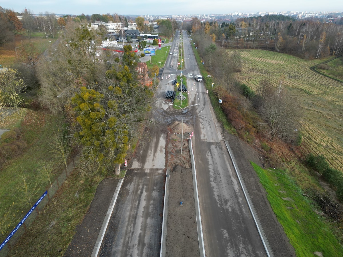 Jak informuje Zarząd Dróg Wojewódzkich w Olsztynie, coraz dłuższe fragmenty nowej nawierzchni są już pokryte asfaltem. W rejonie granicy miasta i skrzyżowania z ulicą Nad Łyną widać znaczące postępy – pojawił się tam asfalt na dwóch jezdniach, a także nowa droga rowerowa i kostkowane chodniki.