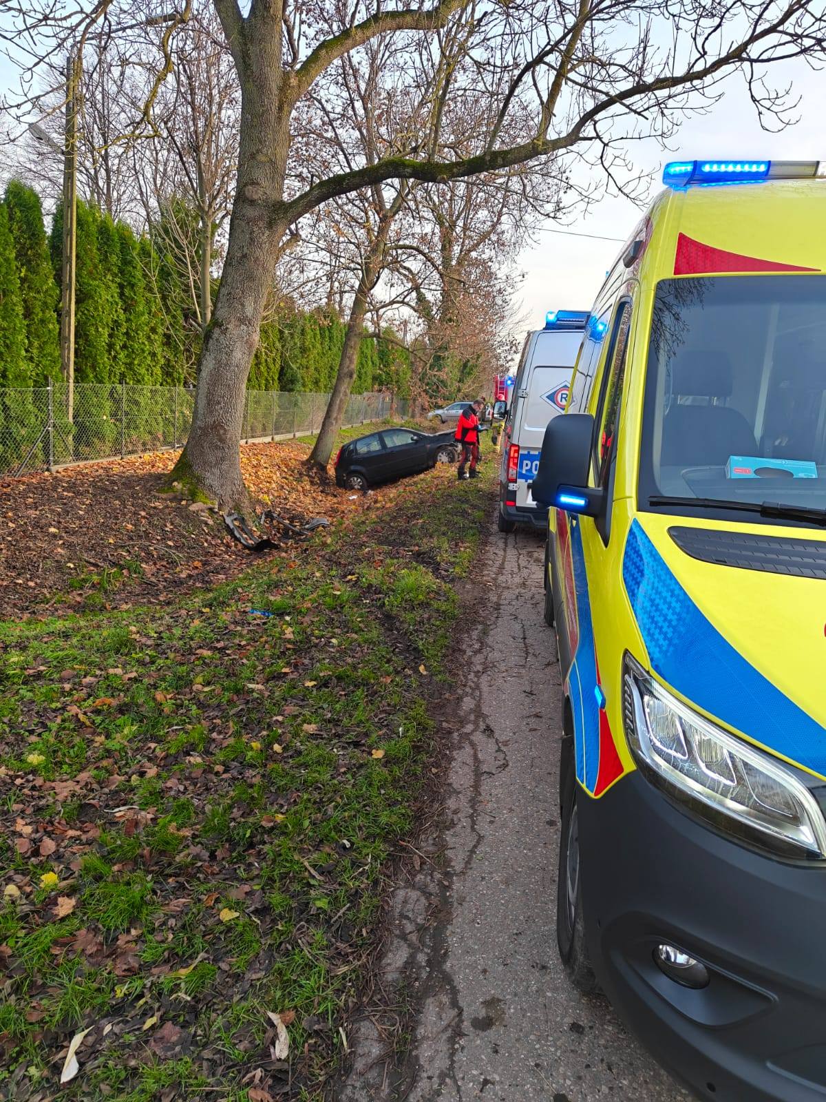 Podróż 18-letniego kierowcy zakończyła się zderzeniem z drzewem.
