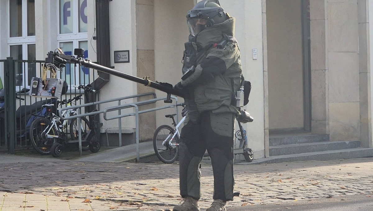 Policyjni kontrterroryści neutralizują pakunek, a służby zatrzymują „sprawcę”