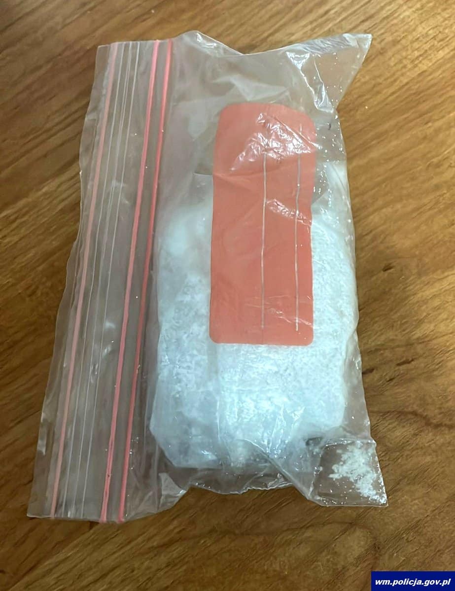 Funkcjonariusz natychmiast rozpoznał, że może mieć do czynienia z narkotykami. Jak się okazało, w zawiniątku znajdowała się amfetamina. W trakcie dalszych czynności ujawniono kolejne porcje zakazanych substancji — łącznie prawie 70 gramów amfetaminy i około 16 gramów marihuany.