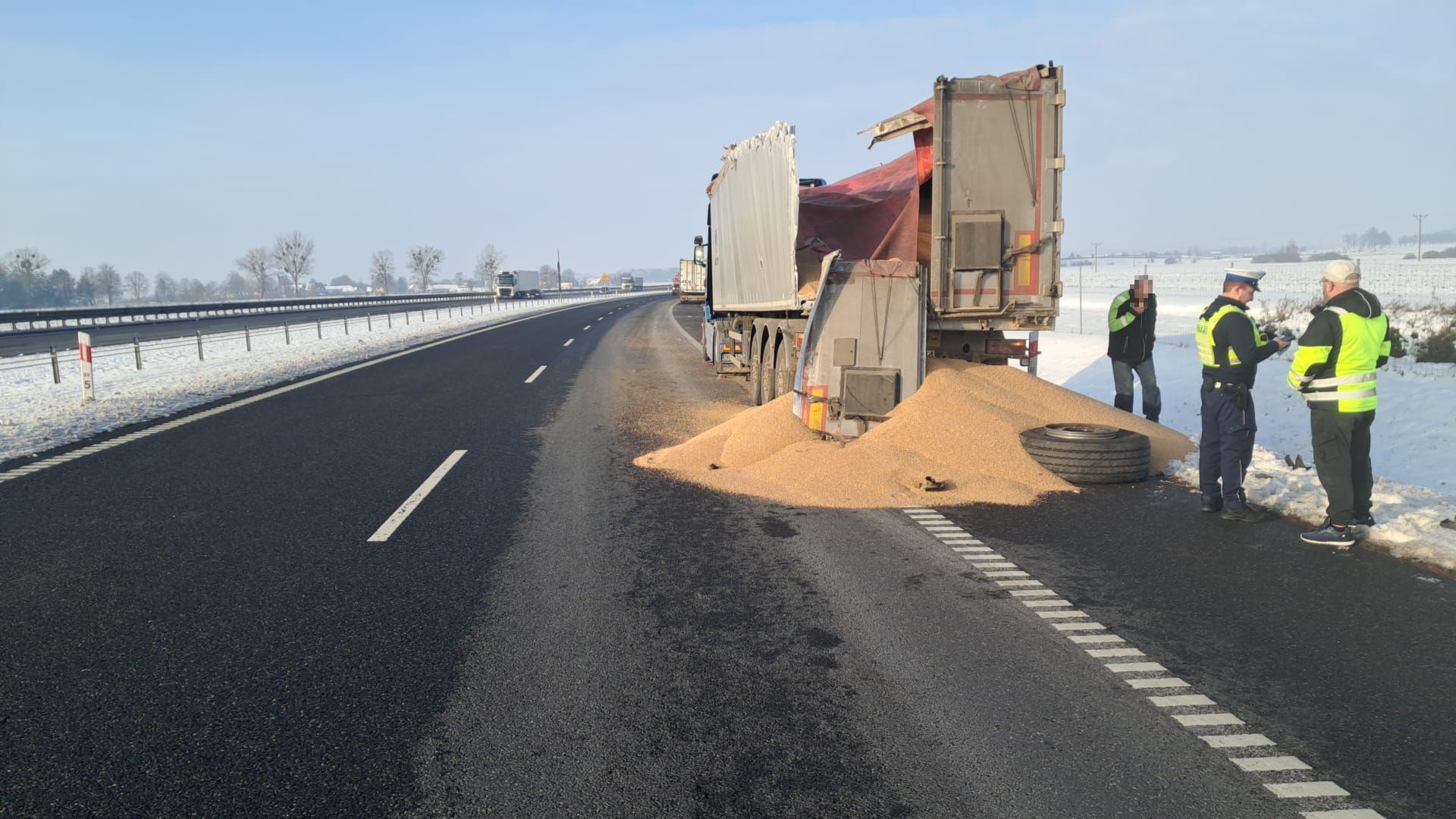 Krótka chwila nieuwagi doprowadziła do poważnych utrudnień na drodze S7 w powiecie nidzickim. Na wysokości jednego z odcinków trasy doszło do kolizji dwóch samochodów ciężarowych, w wyniku której uszkodzona została naczepa przewożąca zboże.