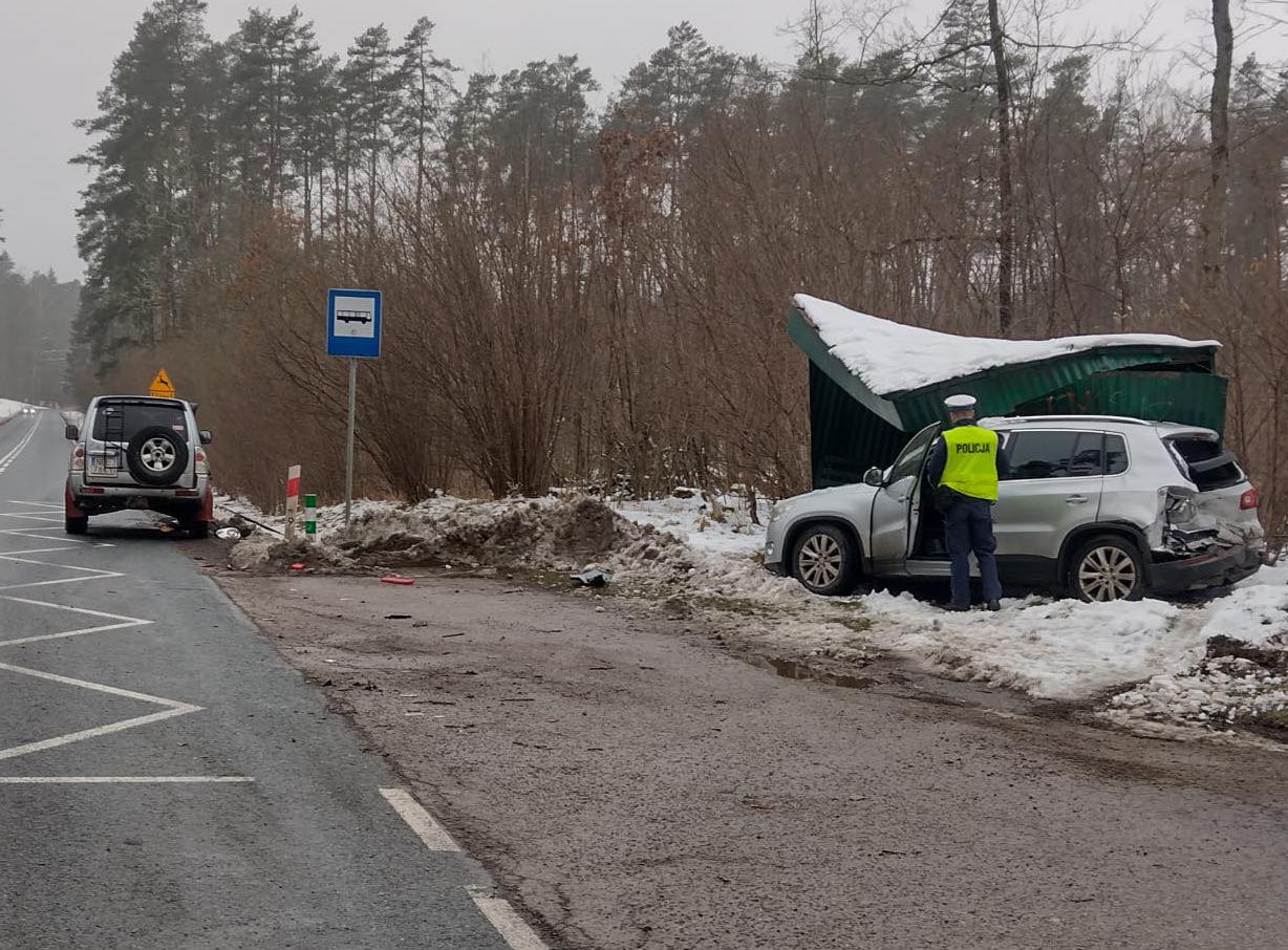 Mitsubishi uderzyło w tył Volkswagena, a siła zderzenia zepchnęła drugi pojazd prosto na pobliski przystanek autobusowy. Widok rozbitych aut przy miejscu, które na co dzień służy mieszkańcom, budził niepokój.