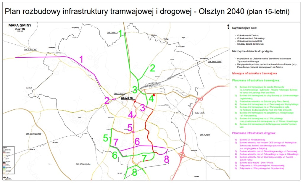 Wizja rozwoju komunikacji tramwajowej i drogowej Olsztyna do 2040 roku