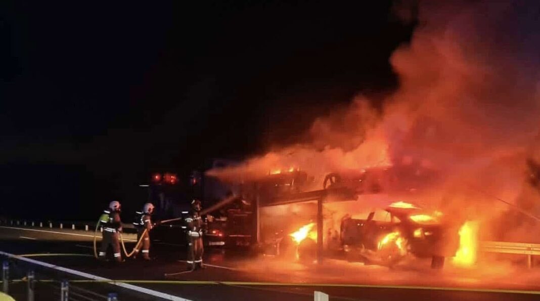 Noc na trasie S61 była niespokojna. W ciszy przerwanej jedynie światłami sygnałów ratunkowych doszło do groźnego pożaru, który w kilka chwil zamienił transportowane auta w pogorzelisko. Ogień pojawił się nagle, a skala zniszczeń okazała się poważna.