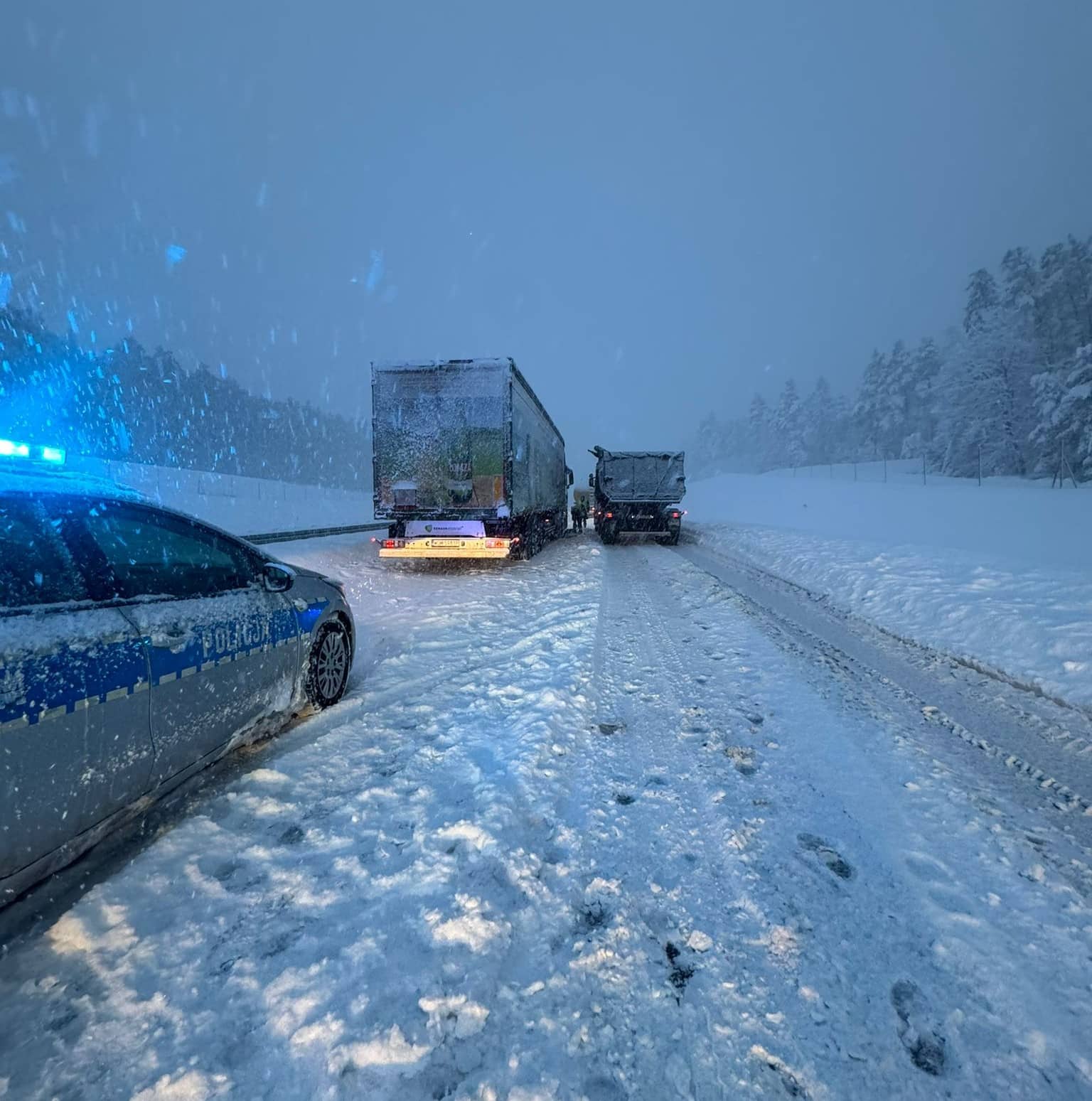 Z relacji kierowców wynika, że na trasie S51 między Olsztynem a Olsztynkiem ruch został praktycznie sparaliżowany. Intensywne opady śniegu doprowadziły do powstania zasp, w których grzęzną zarówno samochody osobowe, jak i ciężarowe.
