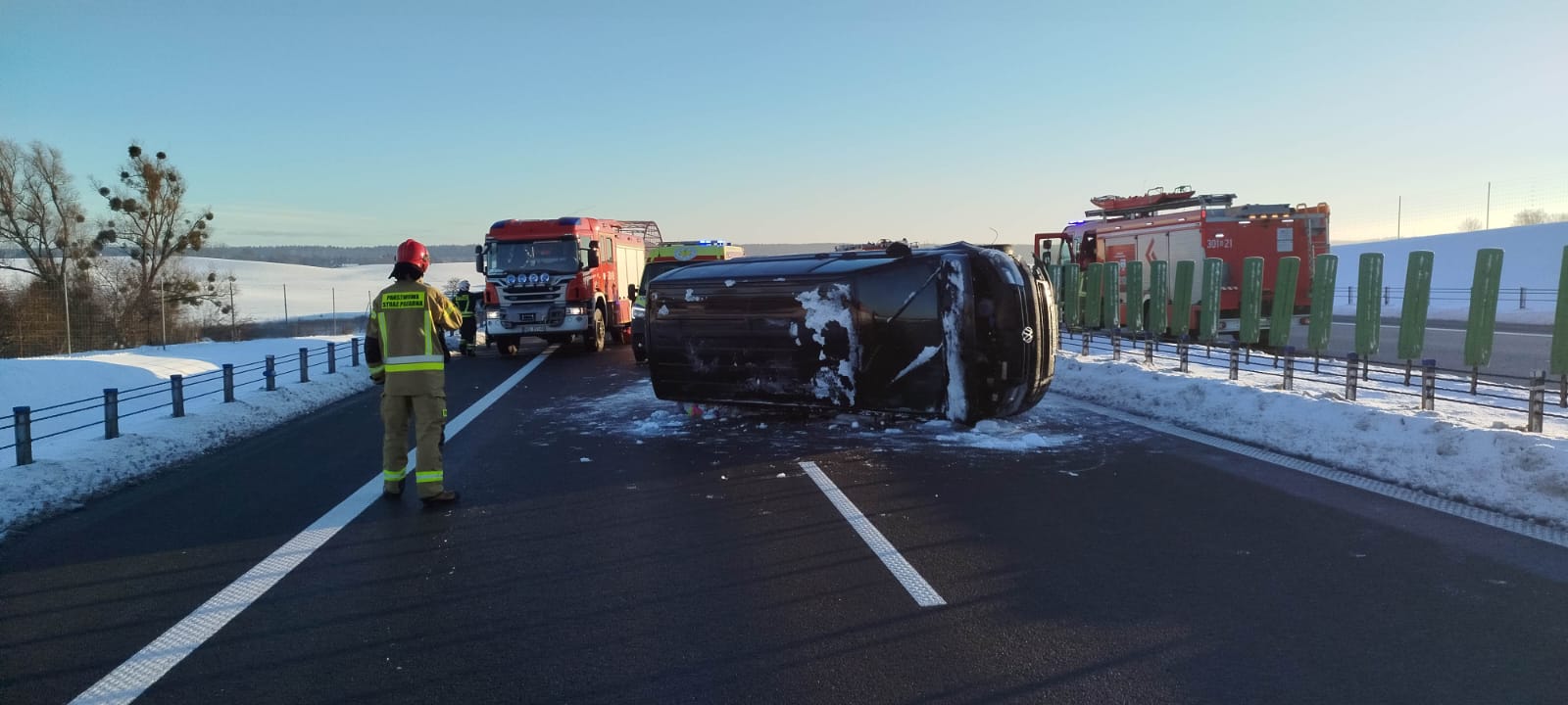 Do zdarzenia doszło na obwodnicy Olsztyna, na drodze ekspresowej S16, na wysokości miejscowości Bartąg. Jak wynika z ustaleń służb, przewrócił się bus marki Volkswagen poruszający się w kierunku Tomaszkowa.